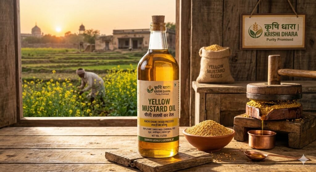 The Krishi Dhara Solution: We keep it 100% authentic. We extract our oil using the traditional Kachi Ghani (Wood-Pressed) method at low temperatures. By slowly crushing premium, locally sourced yellow mustard seeds without any heat or chemicals, we lock in the natural Omega-3s, vitamins, and the delicate, natural aroma of the seed.